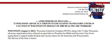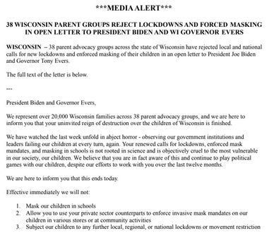 Wisconsin United for Freedom has released an open letter to President Biden and Governor Evers regarding mandatory vaccinations. 73 other parent groups and counting have added to it. Check it out here!