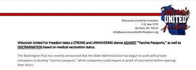 Wisconsin United For Freedom takes a STRONG and UNWAVERING stance AGAINST “Vaccine Passports,” as well as